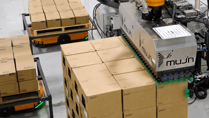 A leading 3PL transformed its direct-to-store operations with MujinOS, coordinating palletizing robots and AMRs into one continuous system. The result: 2× faster throughput and consistent uptime through seasonal peaks.