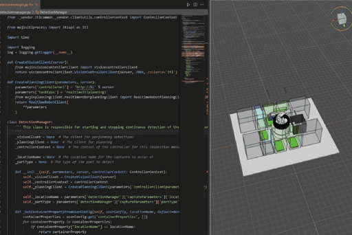 MujinOS continuously maps the workspace using vision and sensors, keeping a real-time model of every asset and object